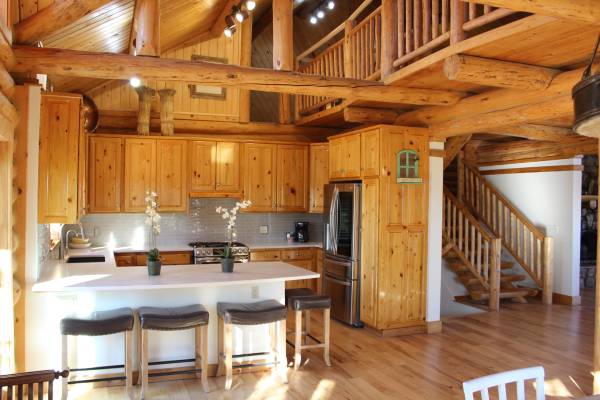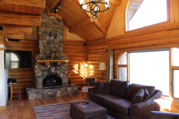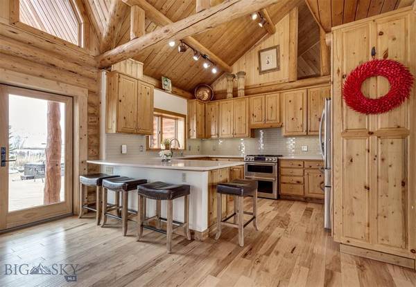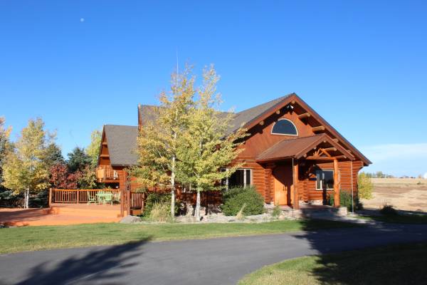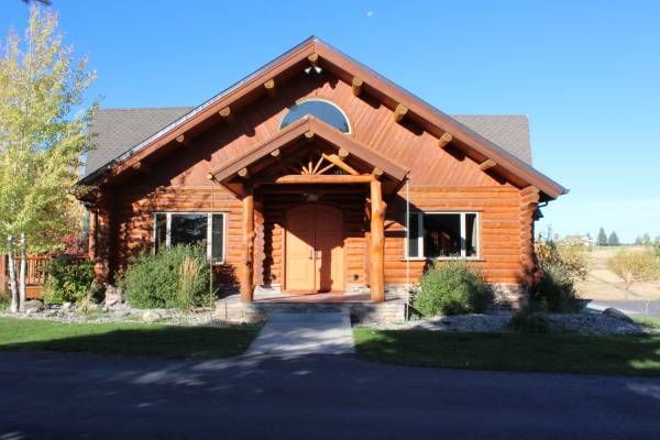 Montana log home near highly desirable Bozeman for rent! This custom-built Swedish Cope style log offers a very generous 5100+ square foot floor plan with 5 bedrooms and 3.5 baths privately located about 6 steps up or down from the main level. Soaring ceilings, hickory wood floors, tongue-in-groove wood ceilings & a massive stone fireplace highlight main floor living areas. The sunny & open kitchen features quartz counters with glass subway tile surrounds & a high-end appliance package. An open loft is the perfect space for a pool table, home office, play area or exercise room with a view! Strategically sited on 20 gently rolling acres, the log home offers incredible panoramic views of the Bridger Mountains & the Gallatin Range.