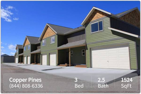 Welcome to Copper Pines, where a serene setting with breathtaking mountain views will whisk you away. This new townhome community is located in a great neighborhood in the Four Corners area, with a prominent Bozeman address. Enjoy your well-appointed townhome, closed patio, and attached garage. All townhomes offer three bedrooms, 2 1/2 baths, hardwood floors, expansive kitchens with islands, tile entry, a washer and dryer, and a primary bed & bath with a walk-in closet. Come home to Copper Pines, where style and comfort are at their finest.