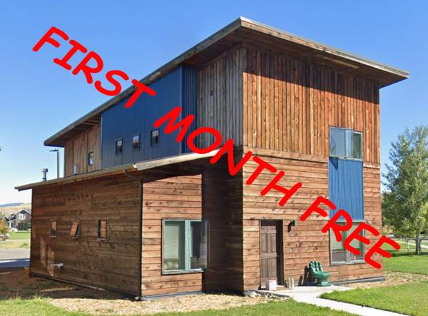 Free First Month on 12 Month Lease. 1,875 SF 3 bed plus office home in central Bozeman, blocks from the grocery store and high school. Across the street from a park and a second park a block away. Hardwood, concrete or tile flooring throughout. 3 full bedrooms, one office, one flex space, large two car garage. Queen sized bed platform in one of the bedrooms. Pets ok with a pet deposit and pet rental fee (depends on qty and size of pets). Washer and dryer included. Master bedroom deck with views of the Bridgers. Tenants pay all utilities and are responsible for lawn maintenance and snow removal. Photos and drawings are of similar home. Fence Negotiable.