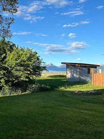 Single-family house on beautiful, mature property close, walking-distance from the Gallatin River, fishing access! This 2 bedroom, 1 bath house has a sunroom, mudroom, 2-car garage, basement, and back deck off the kitchen. The huge yard has plenty of space away from neighbors, there is room for pets and an old coop for chickens or ducks, and the soil is incredibly fertile if you would be interested in gardening there is an area for a garden. There are two plum trees and an apple tree. There's a fire pit in the back with great views of the Bridgers. Washing machine and dryer, oven/stovetop, dishwasher, and fridge are included. Propane for heating, well for water. Opticom fiber is available in the area. Utilities are the tenants responsibility. Perfect rental for a young, outdoor professional or a starting family. Yard maintenance is the tenant's responsibility. Dogs and cats are ok with a non-refundable deposit (cats are actually recommended since this is a rural house!).