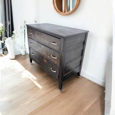 This late 1800s solid wood dresser is more than just old furniture—Crafted with hand-cut dovetail joinery and original cast iron casters, this dresser is built like a tank—but with elegance.