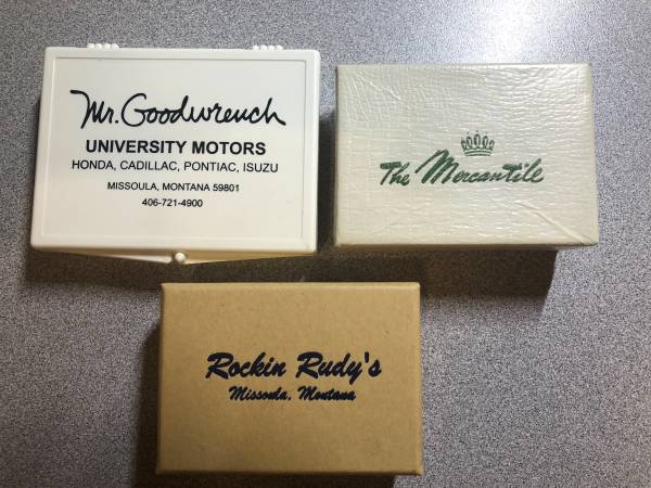 5 VINTAGE JEWELRY BOXES; Missoula, Montana; "The Mercantile" (No Longer In Business) "Rockin Rudy"s" And "Mr. Goodwrench University Motors" (Plastic) "Rembrandt". "Globe"$10. For All. 406-599-36...