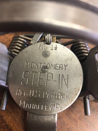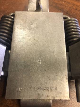#4 Coil Spring; Square Jaws; Square Pan; Has “4 U.S.A. Montgomery” Stamped On Pan; $40.