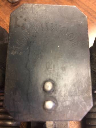 #1-1/2 Coil Spring; Square Jaws; Chain Attached To Bottom Of Base; Ring Bent; Slighty Pitted; $20.
