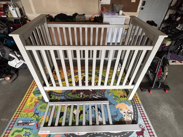 Gray Pottery Barn “Kendall” crib and toddler side rail for sale. Excellent condition. Also a clean Beautyrest crib mattress. $300 for everything. $260 for everything except the mattress if you don’t...