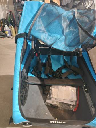 bike trailer with hardware to hook up to bike.