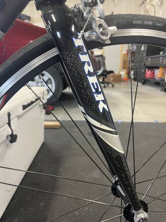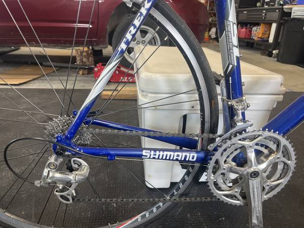 Trek Shimano Road Bike with aluminum frame and carbon fiber front fork. Excellent condition, minimal use. Crank to lowest seat post=23” Seat post to handlebar post=20” Wheels: 26"