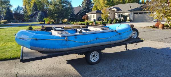 14' Aire, self bailing raft, aluminum oar frame, 2 Aluminum dry boxes, cooler, 3 carbon fiber cataract canyon oars, comes with a nice tilt trailer. THIS BABY IS READY TO GO! GET IN ON SOME LATE FALL...