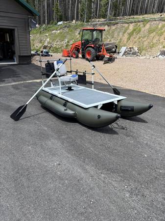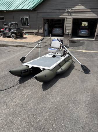 AQUOS PRO, Heavy-Duty for Two Series 11.5 ft lenght, 5.7 ft width Inflatable Pontoon Fishing Boat with casting platform