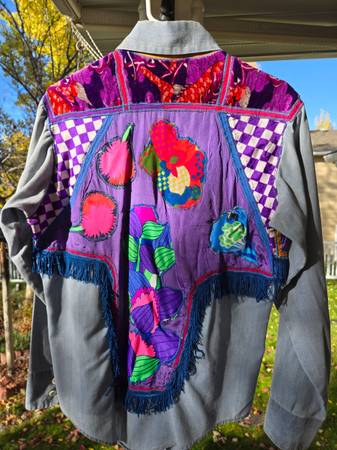 Medium custom Campus Expressions denim long-sleeve shirt. This one-of-a-kind 70s-style shirt would be a super fun choice for a bold and stylish look. ****The item pictured is the exact item you will...