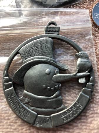 3) Greeting 2007 "Birds And Bloom" Christmas Ornament; Snowman/ Bird; Pewter; New In Pkg.