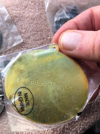4) "Defenders Of Wildlife" Metal 2008 Thin Christmas Ornament; Wolf Howling; New In Pkg.