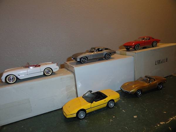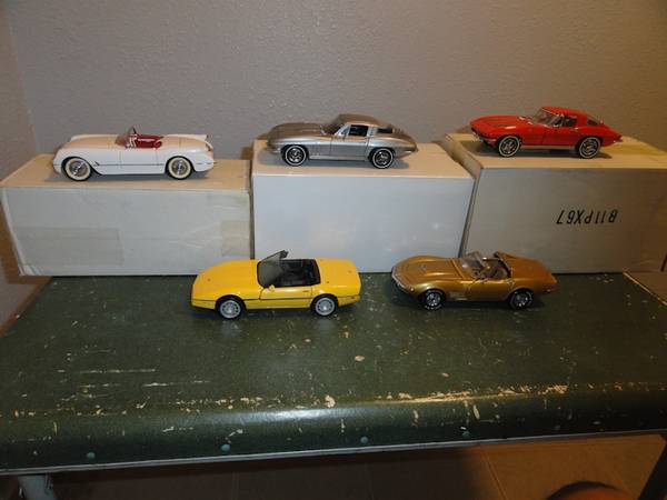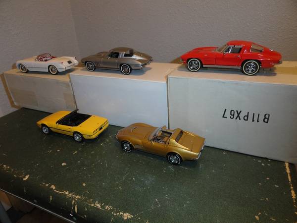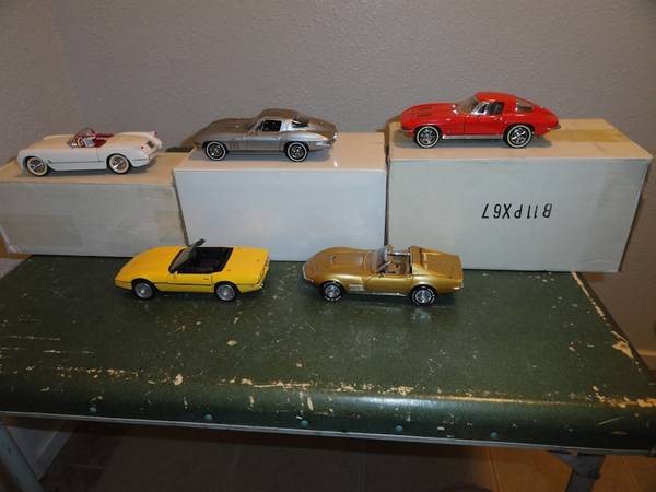 1/24TH SCALE FRANKLIN MINT CORVETTE COLLECTION NUMBERED WITH ALL PAPER WORK, AND ORIGINAL BOXES. FOR THE SERIOUS COLLECTOR. 1953, 1963, 1965, 1971 LS6, 1986