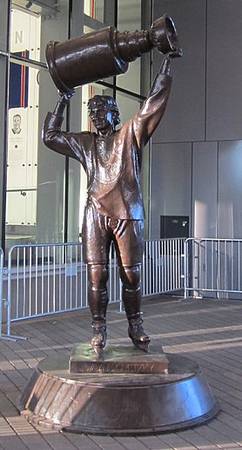 Statue located in Edmonton, of Wayne Gretzky hoisting the Stanley Cup.