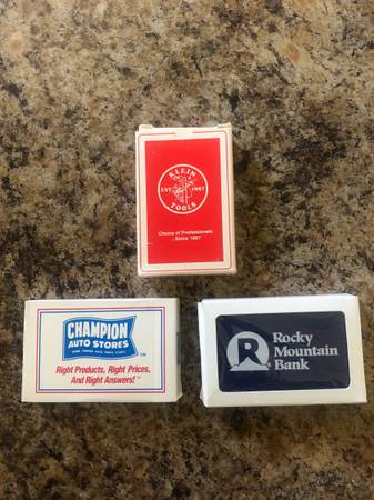 3 Sets Of New Poker Cards; "KLEIN TOOLS" And "CHAMPION AUTO STORES" And ROCKY MOUNTAIN BANK ; Opened But New; All 3 For $8 406-599-36 four five