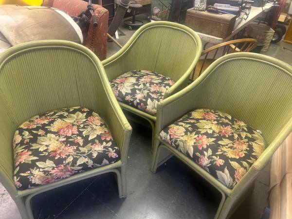 A matching set of 3 art deco chairs, would look great in your sunroom $. 75 each