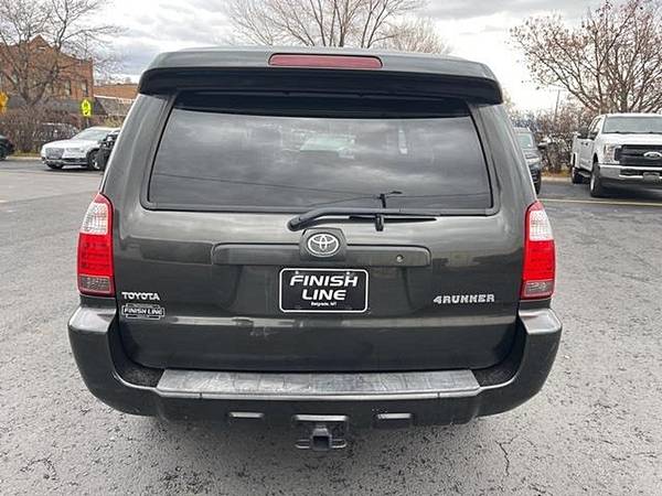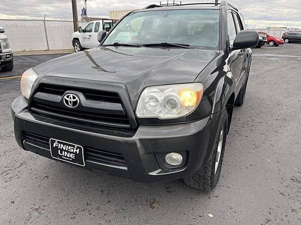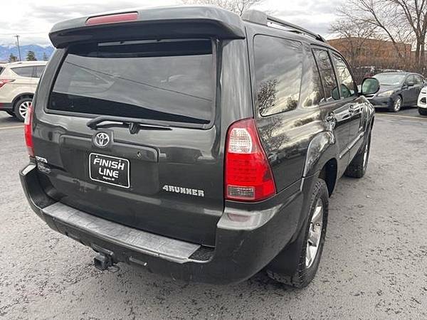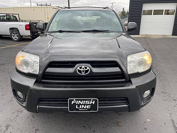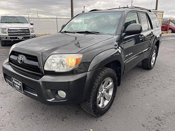 2007 Toyota 4Runner Limited V6 Black 4WD 4.0L V6 SMPI DOHC 5-Speed Automatic with Overdrive4WD, Stone Leather, 18 x 7.5JJ Aluminum Disc Wheels, 3.727 Axle Ratio, 4-Wheel Disc Brakes, 6 Speakers, ABS brakes, Air Conditioning, Alloy wheels, AM/FM CD-Changer w/6 Speakers, AM/FM radio, Auto-dimming Rear-View mirror, Automatic temperature control, Brake assist, Bumpers: body-color, CD player, Compass, Driver door bin, Driver vanity mirror, Dual front impact airbags, Electronic Stability Control, Front anti-roll bar, Front Bucket Seats, Front Center Armrest w/Storage, Front dual zone A/C, Front fog lights, Front reading lights, Front wheel independent suspension, Fully automatic headlights, Garage door transmitter, Heated Bucket Seats, Heated door mirrors, Heated front seats, Illuminated entry, Illuminated running boards, Leather Seat Trim, Leather Shift Knob, Leather Steering Wheel, Leather steering wheel, Low tire pressure warning, Memory seat, Occupant sensing airbag, Outside temperature display, Overhead console, Panic alarm, Passenger door bin, Passenger vanity mirror, Power door mirrors, Power driver seat, Power passenger seat, Power steering, Power windows, Rear anti-roll bar, Rear seat center armrest, Rear window defroster, Rear window wiper, Remote keyless entry, Roof rack, Security system, Speed control, Speed-sensing steering, Split folding rear seat, Steering wheel mounted audio controls, Tachometer, Telescoping steering wheel, Tilt steering wheel, Traction control, Trip computer, Variably intermittent wipers, 4WD, Stone Leather.Come to our website at www.finishline3881111.com To See Our Specials!! Call us at 406-388-1111 for help with any of our departments.Reviews: * The 4Runner provides ample space for four adults and their gear but, in a pinch, can fit seven people. If youre looking for a rugged, powerful midsize SUV that has a reputation for superb reliability and great off-road manners, the 4Runner should be at the top of your list. It also has some exclusive features not found on other SUVs, such as a roll-down back window. Source: KBB.com Visit Finish Line Auto Sales online to see more pictures of this vehicle or call us at 406-388-1111 today to schedule your test drive.