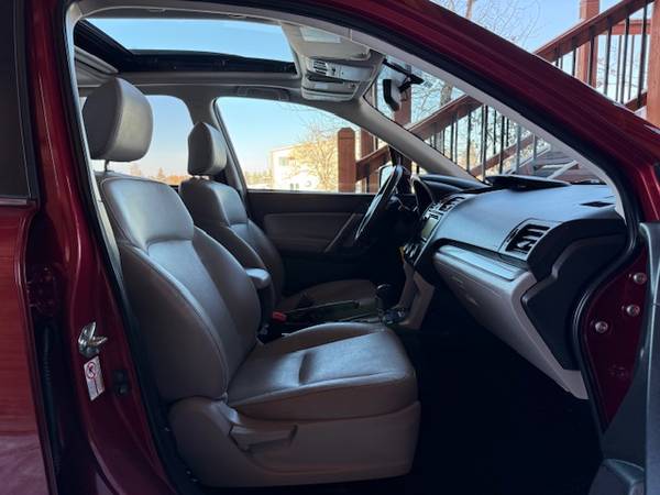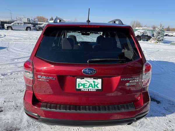 This is a 2014 Subaru Forester 2.5I Limited all-wheel drive wagon with the 2.5L 4-cylinder 16-valve engine and a automatic CVT transmission and has 74,000 miles. This Subaru is venetian red pearl with gray leather interior. It has heated leather seats, 17 inch factory alloy wheels with nice all-season tires, privacy glass, roof rack with crossbars, power glass panoramic moonroof, X-Mode, cruise control, rear back-up camera, heated side mirrors, steering wheel controls, bluetooth compatible and all other power options. It is rated for 24mpg city and 32mpg highway. This Forester is one-owner from Spokane Valley, Washington that has been well maintained and has been non-smoker owned. CARFAX guaranteed, professionally serviced and detailed. Warranties available. $16900 Call Matt or Anthony at (406) 570-7379 VIEW ALL OF OUR INVENTORY @ WWW.PEAKCARS.COM