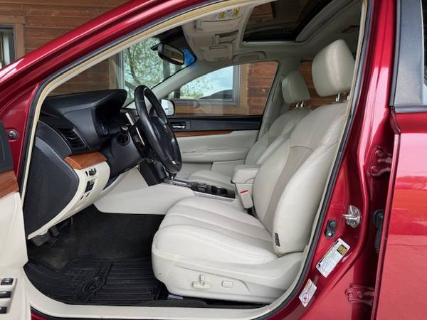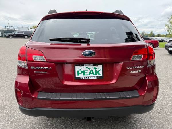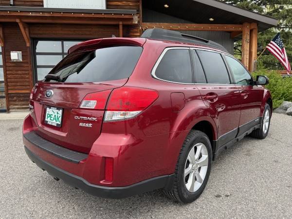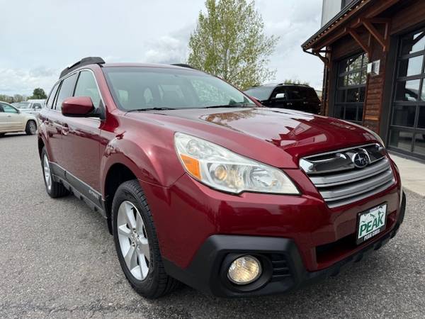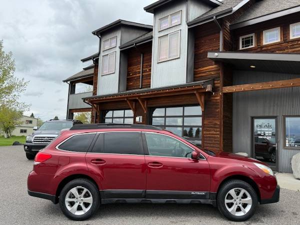 This is a 2014 Subaru Outback Limited all-wheel drive wagon with the 2.5L DOHC 4-cylinder engine and an automatic transmission. It is maroon in color with beige leather interior. It has 109,000 miles. This is a Limited model with back-up camera, navigation, heated leather seats, power moonroof, bluetooth, Harmon Kardon CD player, roof rack, alloy wheels with new Nokian all-season tires, power driver's and passenger seat, steering wheel controls, fog lights, all power options and privacy glass. This Subaru will get 30 mpg on the highway and 24 mpg in town. This Outback is a 1-owner from Encinitas, California that has been well maintained and has been owned by a non-smoker. It has new headgaskets, water pump, etc.. It is CARFAX guaranteed, professionally serviced and detailed. $14900 Anthony or Matt (406) 570-7379 VIEW ALL OF OUR INVENTORY @ WWW.PEAKCARS.COM