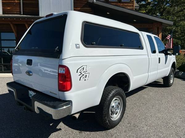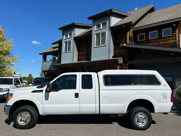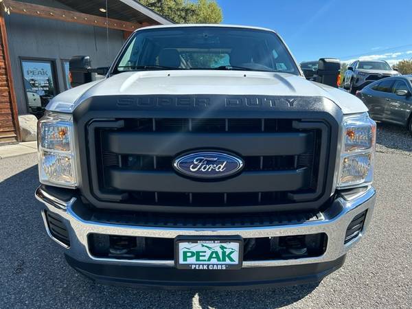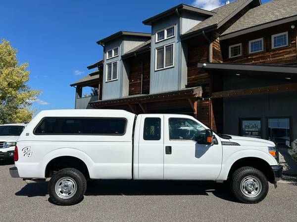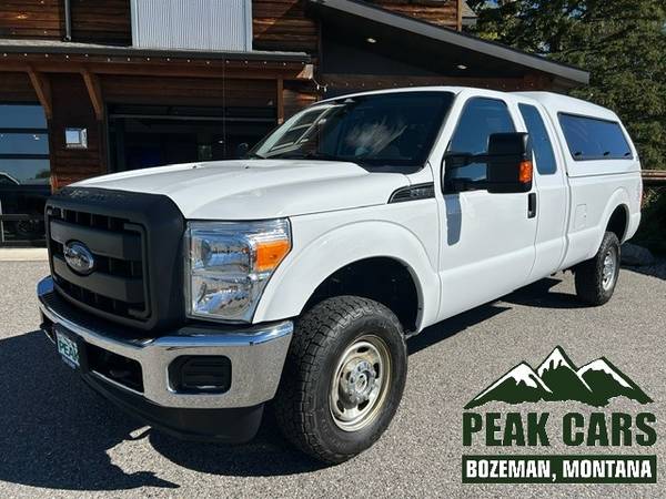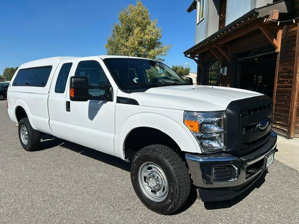 This is a 2016 Ford F350 Super Duty 158" WB long-box 4-door extended cab XL 4x4 pickup with the 6.2L 8-cylinder gas engine and a 6-speed automatic transmission. It is bright white with dark gray plastic interior and black plastic floors. It has 70,000 miles. This F350 has a factory stereo, front cloth bucket seats, power windows, and locks, air conditioning, cruise control, Cooper Discoverer AT3 all-terrain tires, 4.30 gears with locker, integrated trailer brake control, steering wheel audio controls, air conditioning, SYNC voice activated controls, matching fiberglass topper, and rearview camera. This F350 is a one-owner from Washington that has been well maintained. CARFAX guaranteed, professionally serviced including new front and rear brakes, and detailed. $27900 Call Matt or Anthony at (406) 570-7379 VIEW ALL OF OUR INVENTORY @ WWW.PEAKCARS.COM