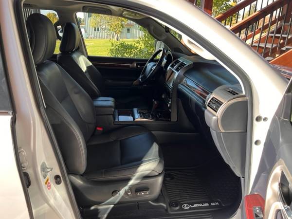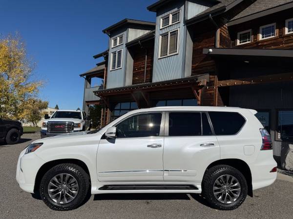 This is a 2016 Lexus GX460 Luxury sport utility vehicle all-wheel drive with the 4.6L 301HP 8-cylinder engine and a 6-speed automatic transmission. It is starfire pearl white in color with black leather interior and has 143,000 miles. This Lexus has heated and cooled leather seats, bluetooth, Sirius satellite radio, heated center row reclining bench seats, power third row seats, Lexus Enform touch screen navigation, power glass moonroof, factory argent alloy wheels with new Falken Rubitrek all-season tires, running boards, LED headlights, fog lights, roof rack and dual memory power seats. It has the premium amplified stereo/CD player and is full-time 4wd. The GX460 is built on the overseas Toyota Prado chassis which is a cross between the 4Runner and the LandCruiser. This GX460 is a two-owner from Fresno, California that has been well maintained and has been non-smoker owned. CARFAX guaranteed, professionally serviced and detailed. $27900 Anthony or Matt (406) 570-7379 VIEW ALL OF OUR INVENTORY @ WWW.PEAKCARS.COM