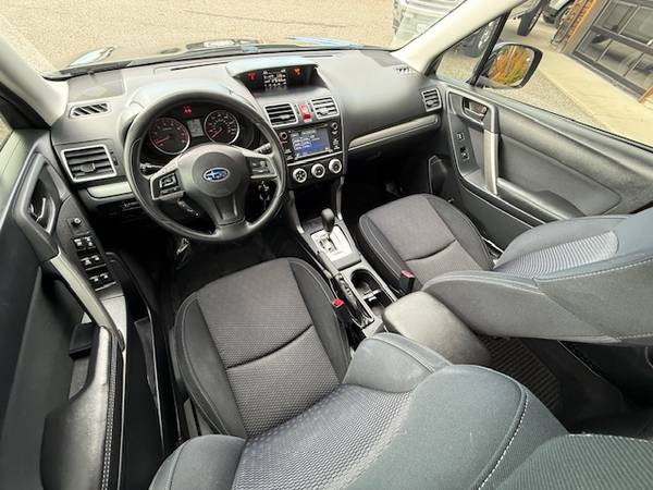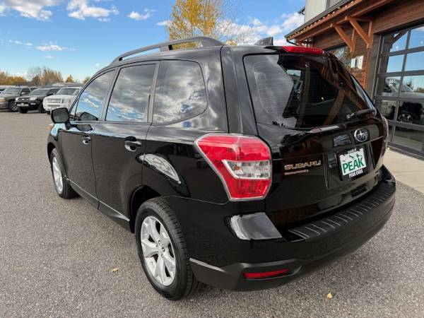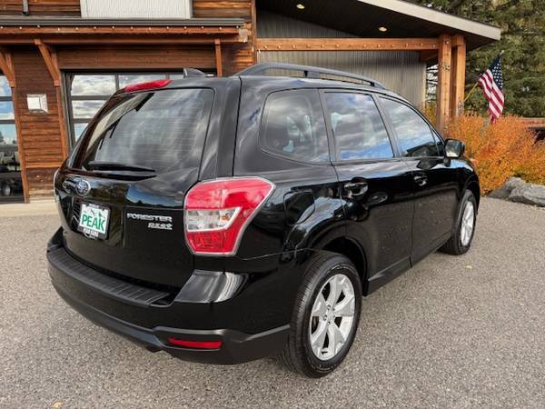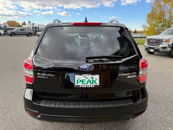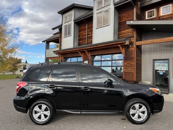 This is a 2016 Subaru Forester 2.5i all-wheel drive wagon with the 2.5L 4-cylinder 16-valve engine and a automatic CVT transmission. It has 91,000 miles. This Subaru is crystal black silica in color with dark charcoal cloth interior. It has power windows and locks, privacy glass, roof rack, cruise control, rear backup camera, bluetooth compatible, 17-inch alloy wheels with nice Continental Contact all-season tires and all other power options. It is rated for 26mpg city and 32mpg highway. This Subaru is a one-owner from Carlsbad, California that has been very well maintained and has been non-smoker owned. CARFAX guaranteed, professionally serviced and detailed. Warranties available. $16900 Call Matt or Anthony (406) 570-7379 VIEW ALL OF OUR INVENTORY @ WWW.PEAKCARS.COM