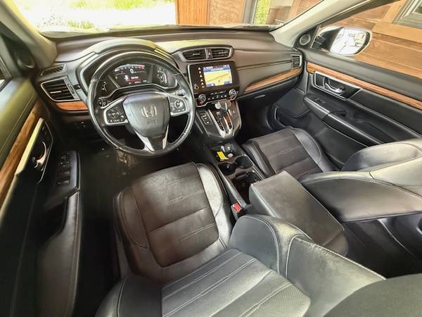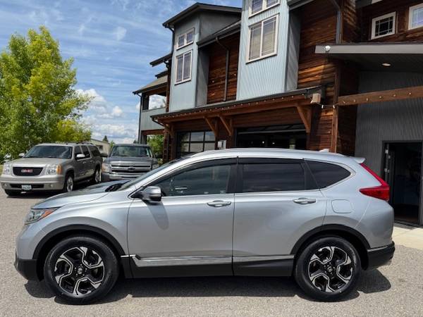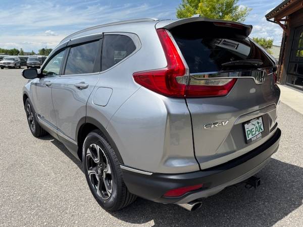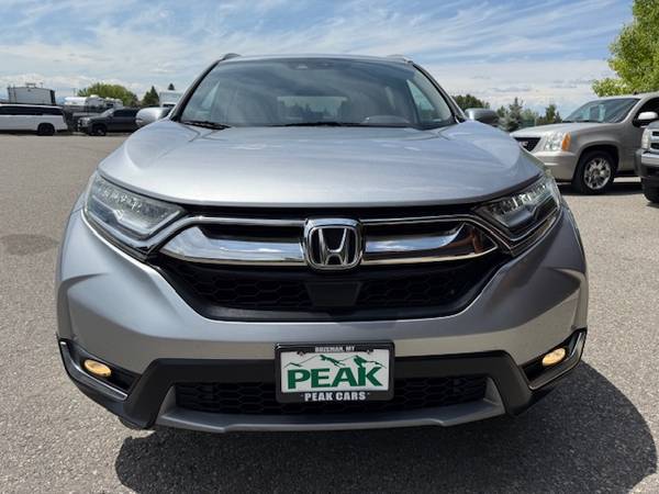 This is a 2017 Honda CR-V Touring all-wheel drive SUV with the 1.5L DOHC 16-valve 4-cylinder engine and an automatic transmission. It is Lunar Silver Metallic with black leather interior. It has 134,000 miles. This CRV has heated leather seats, all power options, 7-inch touchscreen navigation, power glass moonroof, active cruise control, lane keep assist, power liftgate, push button start, hands-free keyless access, CD player, fog lights, roof rack, rear back-up camera, roof rack, cruise control and factory 18-inch alloy wheels with new all-season tires. It is EPA rated for 27mpg city and 33mpg highway. This CRV is a 2-owner from Moreno Valley, California that has been well maintained and has been non-smoker owned. CARFAX guaranteed, professionally serviced and detailed. $17900 Call Matt or Anthony at (406) 570-7379 VIEW ALL OF OUR INVENTORY @ WWW.PEAKCARS.COM