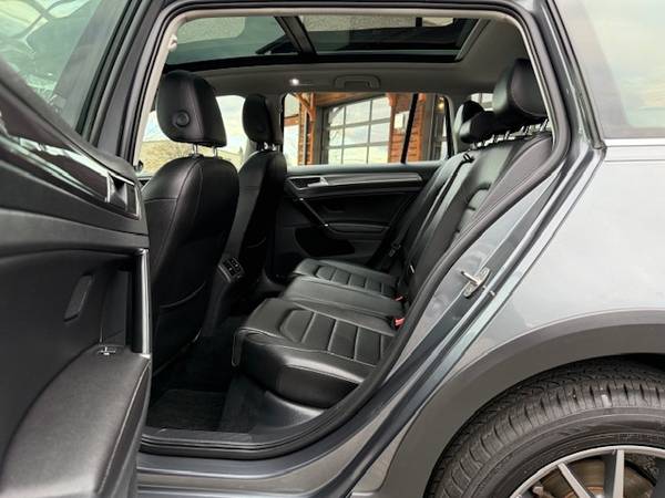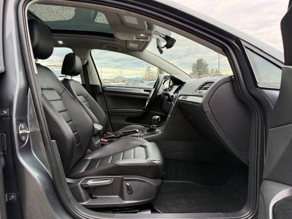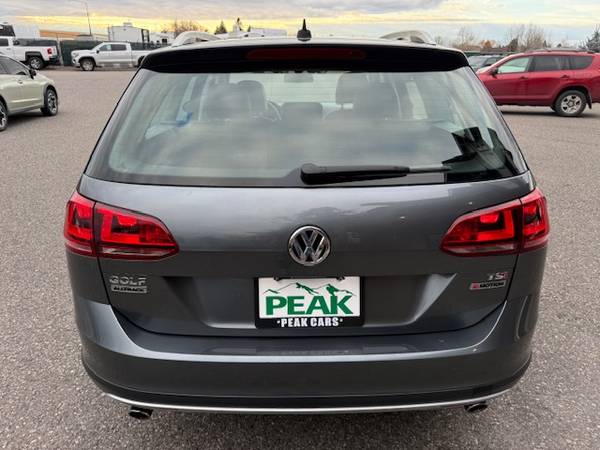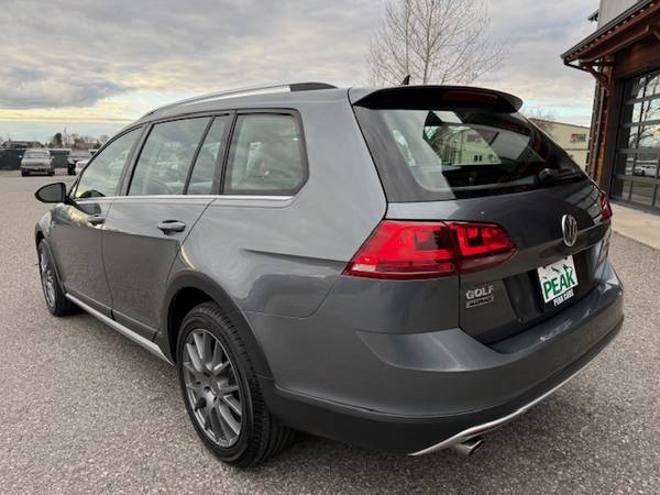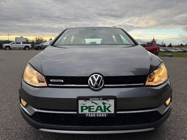 This is a 2017 Volkswagen Golf Alltrack TSI SEL 4Motion all-wheel drive with the 1.8L turbo 4-cylinder and a DSG automatic transmission. It is dark gray with black leather interior. This Alltrack has 88,000 miles. It has heated leather seats, power panormaic moonroof, MB argent gray alloy wheels with nice Yokohama YTX all-season tires. This Alltrack has power windows, power door locks, air conditioning, cruise control, back-up camera, 6.5 inch screen with navigation, and a roof rack. It is EPA rated for 34 mpg highway and 24 mpg city. The Alltrack has 6.9 inches of ground clearance. CARFAX guaranteed, professionally serviced and detailed. $16900 Matt or Anthony (406) 570-7379 VIEW ALL OF OUR INVENTORY @ WWW.PEAKCARS.COM