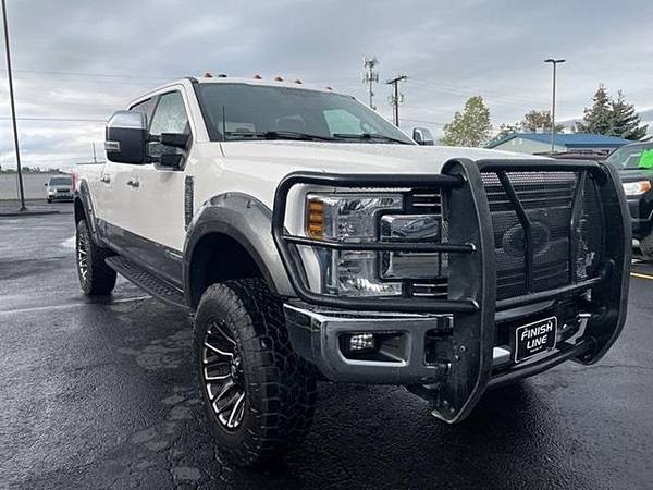 2018 Ford F-250SD Lariat White Platinum 4WD Power Stroke 6.7L V8 DI 32V OHV Turbodiesel TorqShift 6-Speed Automatic4WD, 10 Speakers, 110V/400W Outlet, 3.73 Axle Ratio, 4-Wheel Disc Brakes, 6 Angular Chrome Step Bar, 6 Angular Chrome Step Bars, ABS brakes, Adjustable pedals, Air Conditioning, Alloy wheels, AM/FM radio: SiriusXM, AppLink/Apple CarPlay and Android Auto, Auto-dimming Rear-View mirror, Automatic temperature control, Body-Color Door Handles w/Chrome Insert, Brake assist, Bumpers: chrome, CD player, Chrome Exhaust Tip, Chrome Package, Compass, Delay-off headlights, Driver door bin, Driver vanity mirror, Dual front impact airbags, Dual front side impact airbags, Easy Entry/Exit Memory Driver's Seat Feature, Electronic Stability Control, Emergency communication system: SYNC 3 911 Assist, Exterior Parking Camera Rear, Flow-Through Console, Front anti-roll bar, Front Bucket Seats, Front Center Armrest, Front dual zone A/C, Front fog lights, Front Leather Seating Surfaces 40/Console/40, Front reading lights, Fully automatic headlights, GVWR: 10,000 lb Payload Package, Heated door mirrors, Illuminated entry, Lariat Value Package, Leather steering wheel, LED Box Lighting, LED Roof Clearance Lights, Low tire pressure warning, Memory Power-Adjustable Pedals, Order Code 608A, Outside temperature display, Overhead airbag, Overhead console, Panic alarm, Passenger door bin, Passenger vanity mirror, Power door mirrors, Power driver seat, Power Heated/Cooled Driver Seat w/Memory, Power Heated/Cooled Passenger Seat, Power passenger seat, Power steering, Power windows, PowerScope Trailer Tow Mirrors w/Memory, Radio data system, Radio: Premium Sony Audio w/Single-CD/MP3 Player, Rear CHMSL Camera, Rear Parking Sensors, Rear reading lights, Rear seat center armrest, Rear step bumper, Rear window defroster, Remote keyless entry, Remote Start System, Security system, SiriusXM Radio, Speed control, Split folding rear seat, Steering wheel mounted audio controls, SYNC 3 Communications and Entertainment System, Tachometer, Telescoping steering wheel, Tilt steering wheel, Traction control, Trip computer, Turn signal indicator mirrors, Unique Chrome Mirror Caps, Variably intermittent wipers, Voice-Activated Navigation, Wheels: 18 Bright Machined Cast Aluminum, Wheels: 18 Chrome PVD Aluminum, 4WD.Come to our website at www.finishline3881111.com To See Our Specials!! Call us at 406-388-1111 for help with any of our departments.Awards: * 2018 KBB.com Brand Image Awards * 2018 KBB.com 10 Most Awarded Brands Visit Finish Line Auto Sales online to see more pictures of this vehicle or call us at 406-388-1111 today to schedule your test drive.