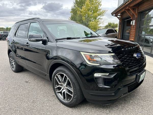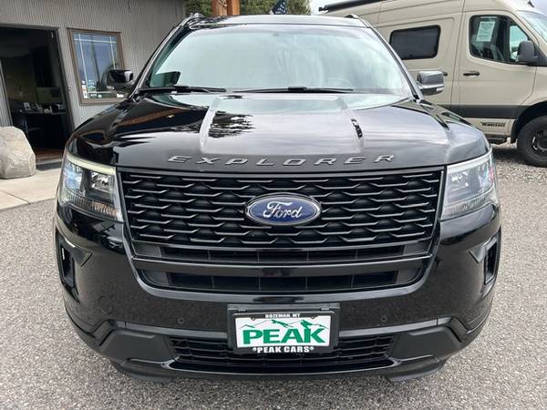 This is a 2018 Ford Explorer Sport 4x4 with the 3.5L Ecoboost 6-cylinder engine and a 6-speed automatic transmission. It is black ebony with black leather interior. This Explorer has 68,000 miles. It has heated leather seats, back-up camera, bluetooth, LED lighting, rear spoiler, power 3rd row seat, center row bench seat, remote start, SONY SYNC audio system with 8-inch touch screen, voice-activated navigation, power liftgate, remote start, Terrain Management, Sport package, 20-inch machined black/alloy wheels nice all-season tires, black roof rack and LED fog lights. It is EPA rated 16mpg city and 22mpg highway. This Explorer is from Cerritos, California and has been very well maintained and has been non-smoker owned. CARFAX guaranteed, professionally serviced and detailed. $23900 Call Matt or Anthony at (406) 570-7379 VIEW ALL OF OUR INVENTORY @ WWW.PEAKCARS.COM