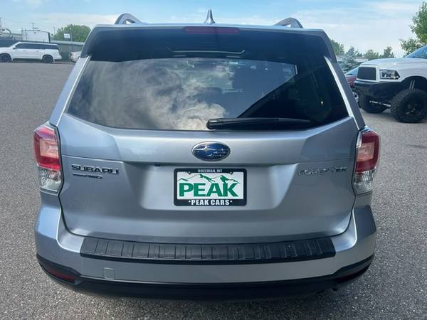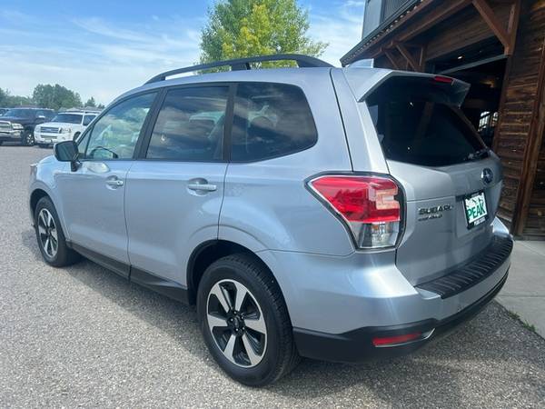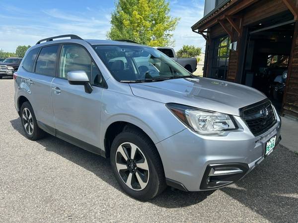 This is a 2018 Subaru Forester 2.5i Premium all-wheel drive wagon with the 2.5L 4-cylinder 16-valve engine and a automatic CVT transmission. It has 52,000 miles. This Subaru is Silver Metallic in color with black cloth interior. It has heated seats, panoramic moonroof, privacy glass, roof rack, cruise control, rear backup camera, bluetooth compatible, 17" factory alloy wheels with nice all-season tires, EyeSight, X-Mode, and all other power options. It is rated for 26mpg city and 32mpg highway. This Subaru is a 2-owner vehicle from Carlsbad, California that has been very well maintained, non-smoker owned. CARFAX guaranteed, professionally serviced and detailed. Warranties available. $24900 Matt or Anthony (406) 570-7379 VIEW ALL OF OUR INVENTORY @ WWW.PEAKCARS.COM