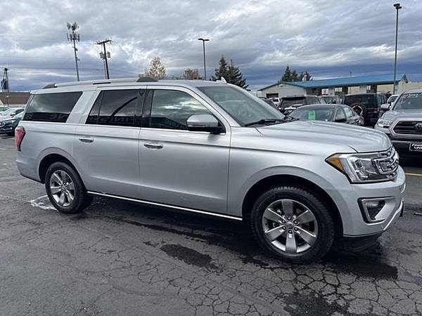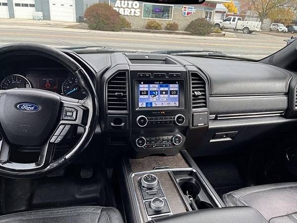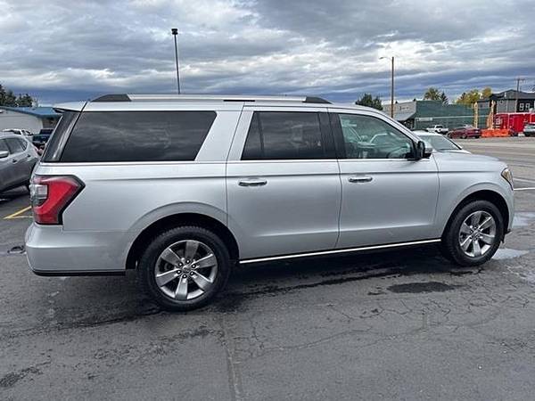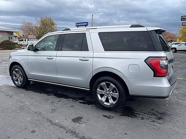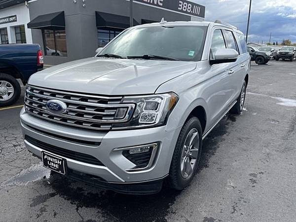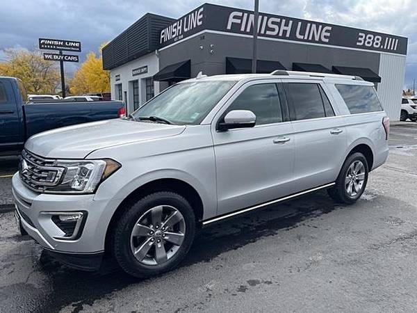 2019 Ford Expedition Max Limited Ingot Silver 4WD EcoBoost 3.5L V6 GTDi DOHC 24V Twin Turbocharged 10-Speed Automatic12 Speakers, 3.31 Axle Ratio, 3rd row seats: split-bench, 4-Wheel Disc Brakes, ABS brakes, Adjustable pedals, Air Conditioning, Alloy wheels, AM/FM radio: SiriusXM, AppLink/Apple CarPlay and Android Auto, Auto-dimming door mirrors, Auto-dimming Rear-View mirror, Automatic temperature control, Brake assist, Bumpers: body-color, Compass, Delay-off headlights, Driver door bin, Driver vanity mirror, Dual front impact airbags, Dual front side impact airbags, Electronic Stability Control, Emergency communication system: SYNC 3 911 Assist, Equipment Group 300A, Exterior Parking Camera Rear, Four wheel independent suspension, Front anti-roll bar, Front Bucket Seats, Front Center Armrest, Front dual zone A/C, Front fog lights, Front reading lights, Fully automatic headlights, Garage door transmitter, Heated and Cooled Leather Front Bucket Seats, Heated door mirrors, Heated front seats, Heated rear seats, Heated steering wheel, Illuminated entry, Leather steering wheel, License Plate Bracket, Low tire pressure warning, Memory seat, Occupant sensing airbag, Outside temperature display, Overhead airbag, Overhead console, Panic alarm, Passenger door bin, Passenger vanity mirror, Pedal memory, Power door mirrors, Power driver seat, Power Liftgate, Power passenger seat, Power steering, Power windows, Radio data system, Radio: B&O Sound System by Bang and Olufsen, Rear air conditioning, Rear anti-roll bar, Rear audio controls, Rear reading lights, Rear window defroster, Rear window wiper, Reclining 3rd row seat, Remote keyless entry, Roof rack: rails only, Security system, SiriusXM Satellite Radio, Speed control, Speed-sensing steering, Speed-Sensitive Wipers, Split folding rear seat, Steering wheel memory, Steering wheel mounted audio controls, SYNC 3 Communications and Entertainment System, Tachometer, Telescoping steering wheel, Tilt steering wheel, Traction control, Trip computer, Turn signal indicator mirrors, Variably intermittent wipers, Ventilated front seats, Voice-Activated Touch-Screen Navigation System, Voltmeter, Wheels: 20 Premium Dark Tarnish-Painted Aluminum.Come to our website at www.finishline3881111.com To See Our Specials!! Call us at 406-388-1111 for help with any of our departments.Awards: * JD Power Automotive Performance, Execution and Layout (APEAL) Study Visit Finish Line Auto Sales online to see more pictures of this vehicle or call us at 406-388-1111 today to schedule your test drive.