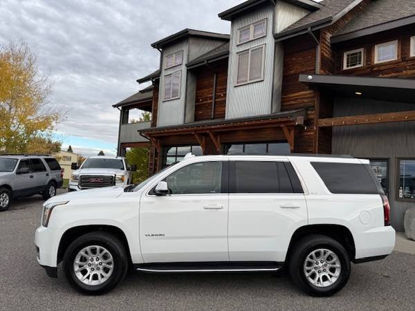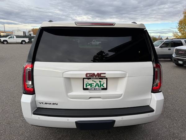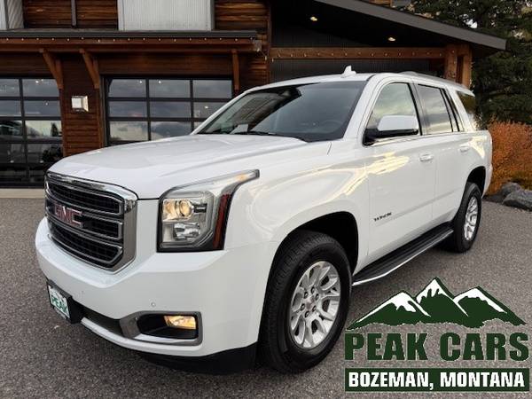 This is a 2019 GMC Yukon SLT four-wheel drive with the 5.3L 8-cylinder gas engine and a 8-speed automatic transmission. This Yukon is bright white in color with black leather interior and has 91,000 miles. This SLT has options including lane departure/assist, navigation, power adjustable pedals, back-up camera, BOSE 10-speaker stereo, quad bucket seats, power center bucket seats, power 3rd row seats, heated steering wheel, heated/cooled leather front seats, heated rear seats, tinted windows, Class III tow package with cover and 18-inch factory alloy wheels with nice Michelin Primacy all season tires. This Yukon is a two-owner from Bakersfield, California that has been well maintained and has been non-smoker owned. $31900 Call Matt or Anthony (406) 570-7379 VIEW ALL OF OUR INVENTORY @ WWW.PEAKCARS.COM