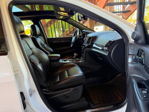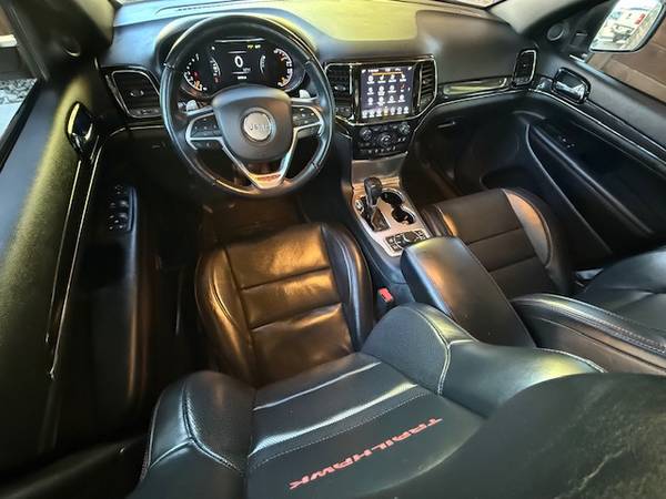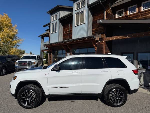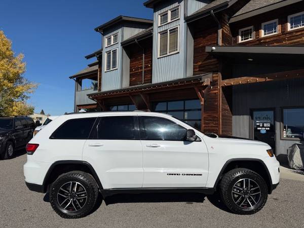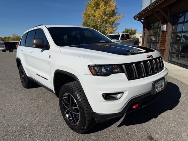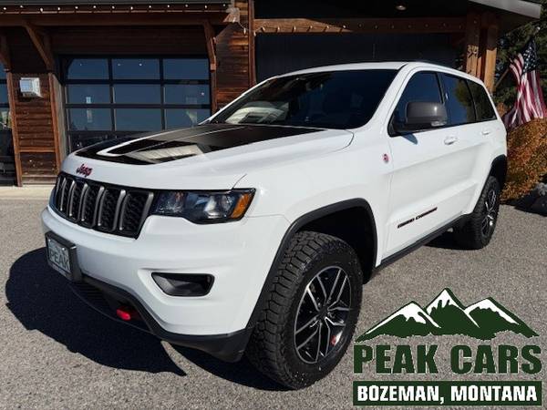 This is a 2020 Jeep Grand Cherokee Trailhawk 4x4 with the 3.6L Pentastar 6-cylinder gas engine and an 8-speed automatic transmission. It is Bright White with black/ruby red leather interior and has 52,000 miles. It has all standard options including Quadra-trac II 4x4 with select terrain, parkview rear back-up camera, keyless enter and go, trailer-tow group, 8.4" Uconnect HD radio, bluetooth, Sirius, heated and ventilated front seats, heated steering wheel, heated second row seats, power driver and passenger seats, 18-inch off-road aluminum wheels with nice Falken Rubitrek all-terrain tires, dual pane panoramic sunroof, power liftgate, Trailhawk luxury group, running boards, halogen headlamps, LED taillights, and blind spot and cross path detection. EPA rated for 18mpg city and 25mpg highway. This Trailhawk is a 1-owner from Bozeman that has been well maintained and has been non-smoker owned. CARFAX guaranteed, professionally serviced and detailed. $24900 Call Matt or Anthony at (406)570-7379 VIEW ALL OF OUR INVENTORY @ WWW.PEAKCARS.COM