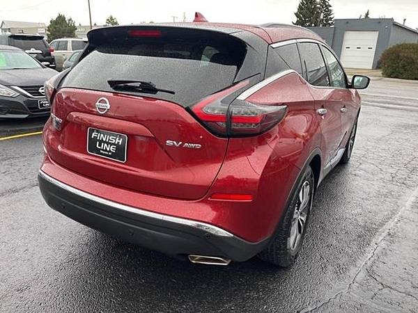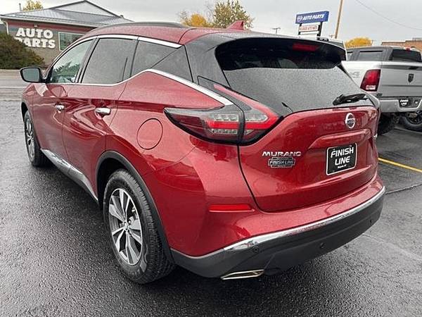 2020 Nissan Murano SV Cayenne Red Metallic AWD 3.5L V6 DOHC 24V CVT with XtronicCVT with Xtronic, AWD, 4-Wheel Disc Brakes, 4.667 Axle Ratio, 6 Speakers, ABS brakes, Air Conditioning, Alloy wheels, AM/FM radio: SiriusXM, AM/FM/CD/MP3/WMA Audio System, Auto High-beam Headlights, Auto-dimming Rear-View mirror, Automatic temperature control, Blind Spot Warning, Brake assist, Bumpers: body-color, Carpeted Floor Mats and Carpeted Cargo Mat, CD player, Child-Seat-Sensing Airbag, Cloth Seat Trim, Delay-off headlights, Driver door bin, Driver vanity mirror, Dual front impact airbags, Dual front side impact airbags, Electronic Stability Control, Four wheel independent suspension, Front anti-roll bar, Front Bucket Seats, Front Center Armrest, Front dual zone A/C, Front reading lights, Fully automatic headlights, Garage door transmitter: HomeLink, Heated door mirrors, Illuminated entry, Knee airbag, Leather Shift Knob, Low tire pressure warning, NissanConnect featuring Apple CarPlay and Android Auto, Occupant sensing airbag, Outside temperature display, Overhead airbag, Overhead console, Panic alarm, Passenger door bin, Passenger vanity mirror, Power door mirrors, Power driver seat, Power passenger seat, Power steering, Power windows, Radio data system, Rear anti-roll bar, Rear Parking Sensors, Rear reading lights, Rear seat center armrest, Rear side impact airbag, Rear window defroster, Rear window wiper, Remote keyless entry, Roof rack: rails only, Security system, Speed control, Speed-sensing steering, Speed-Sensitive Wipers, Split folding rear seat, Spoiler, Steering wheel mounted audio controls, Tachometer, Telescoping steering wheel, Tilt steering wheel, Traction control, Trip computer, Turn signal indicator mirrors, Variably intermittent wipers, Wheels: 18 Machined Aluminum-Alloy, CVT with Xtronic, AWD.Come to our website at www.finishline3881111.com To See Our Specials!! Call us at 406-388-1111 for help with any of our departments.Awards: * JD Power Initial Quality Study (IQS) Visit Finish Line Auto Sales online to see more pictures of this vehicle or call us at 406-388-1111 today to schedule your test drive.