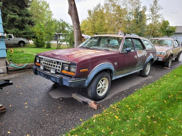 Boys and Girls, these cars are getting scarce and as such, they need to be recreated in a very imaginative and creative way. These two Eagles--an '83' Sport with a 5 speed manual (109,931 miles)--VERY RARE--and an '86' Limited with automatic (133,800 miles)--are getting more RARE by the day. AMC Eagles were only made from 1980 until 1987. AMC was the VERY FIRST manufacturer to put a conventional family sedan or wagon on the market and make it four-wheel-drive; the very beginning of other auto makers starting to follow this example of taking these types of cars and engineering them with all-wheel-drive so as to provide additional, reliable winter-time driving capabilities. (Sidebar here: Because they are "dead", bring a car trailer or a tow-bar to take them home.) Continuing: AMC and Jeep were under the same corporate umbrella back then and shared engineers in common so it was a natural innovation for this model of their cars to become four-wheel drive too, thereby making the Eagles a highly desirable car back then. What makes them "WHAT IF" cars? About 20 years ago there was an article in my HOT ROD magazine that featured a "plain jane" Chevy Malibu recreated into a "resto-mod"--a restoration with modifications. The owner's idea was "what if" Chevrolet had patterned a Malibu after a first generation Z-28 Camaro ie.burnt orange color, a 4-speed 'rock-crusher' Borg-Warner super T-10 transmission, rallye wheels, hounds-tooth cloth interior, with a "hot", big block 427 under the hood instead of the "hot", small block, 302, etc. It was a beautiful, super-cool car and the idea stuck with me. As I continued to read HOT ROD featuring custom cars over the years since then, witnessing the incredible creativity among car owners and custom car builders, my "fevered imagination" began to think about "what if" Carrol Shelby (before he passed away a few years ago)--the originator of the HOT little two-seater 427 Cobra, plus the Boss 302, Boss 429, and KR 500 (King of the Road) Mustangs; some of the most highly sought after and "lusted after" collector cars over the years since the sixties--had designed and built a Shelby version of the AMC Eagles; both wagons and sedans??? He did it for the little Dodge Rampage "pickup", so I reasoned--an ugly little front wheel drive, Subaru BRAT type of two-seater . . . in my opinion--so why wouldn't he do it for the Eagles which are far and away a much cooler car than a Rampage if he had been asked nicely, and you said, "please"??? As my imagination continued to "fever", I "imagineered" myself into Shelby's mind and thought about transplanting the entire powertrain out of a second generation ford Explorer with the 302 / 5.0 L V-8, 'hopped-up', to include the Explorer's independent rear suspension; then add Shelby's trademark appearance colors, stripes, hood scoops, and spoilers both front and rear . . . and give it a studly name like "Snake Eater" . . . or "Viper Eater" as a tribute to Shelby's genius--insert a big-grin, smiley-face emoji here--or, OR, a "what if" tribute car to Henessy, Lingenfelter, or Roush or any of the other cool car builders on the Motor trend Channel??? Regrettably, I'm unable to seriously consider this idea any further. I recently turned 74, don't have a shop to work in, don't have sufficient funds, and have ongoing medical problems stemming from Agent Orange exposure in Vietnam combined with the two, Pfizer Covid-19 shots. So, these two cars each need a good home with a new hopefully creative owner, with capabilities to make them into their own new modernized, 21st Century versions that--were AMC engineers all still alive--would be extremely proud to see and claim! These cars are an excellent foundation to start from though not running, because they haven't been in accidents and aren't all "cancered-out because they weren't exposed to alot of salty roads. And AMC was one of the first manufacturers to begin using galvanized metal in their body panels to help prevent rust. They both have clear titles. I plan to personally auction them individually to the highest bidder who has cash in hand beginning at 12:00 noon on Saturday, October 18th . . . with NO RESERVE!! IF, however, someone shows up in the meantime, with $2,500 in cash before noon on the 18th, I'll take their money and sign over the title to him or her. You're welcome to come by and look at them ahead of time on Western Drive, three doors up from Durston (big FOR SALE sign out front). The cars aren't "pretty"; but they are "diamonds-in-the-rough" with incredible potential! So, bring all the $100 bills you can stuff into your pockets and briefcase . . . it doesn't mean you'll need to spend them all; it just means you'll be ready to effectively compete to the best of your ability against anyone else who shows up, sees their creative potential, and wants them, too. Someday, you'll be the very first at a car show to make other custom car builders, cool car aficionados, and fellow AMC owners--and Subaru owners--stop and drool and start to think, "Gee, I wish I could own that car!!! . . . I wonder if I could talk him into selling it to me???"