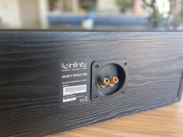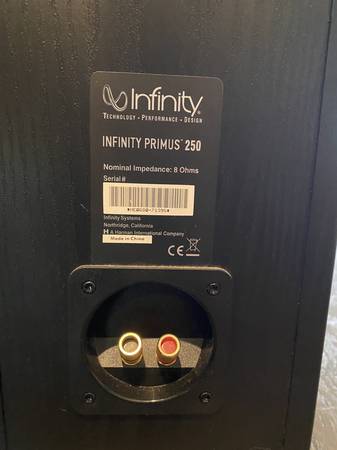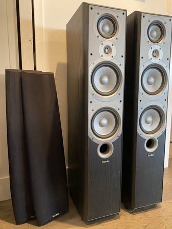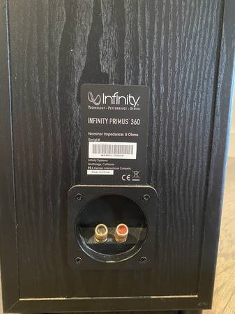 The others are Infinity Primus 250. These could be stand-alone fronts, but instead, saw light use as rear surrounds. These are 2-way with dual woofers. Approximately 36" tall.
