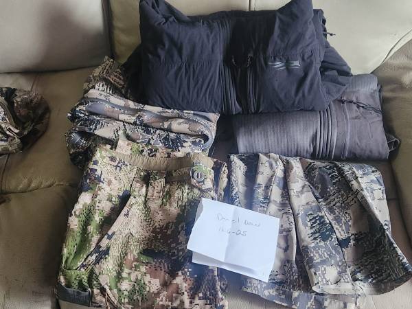 All have been worn a handfull of times Xl Optifade mountain jacket 100.00 Xl Traverse gloves (never worn) 30.00 Optifade hooded undershirt 50.00 Equinox guard pant size 34T 125.00 Size 34 ascent Dew...