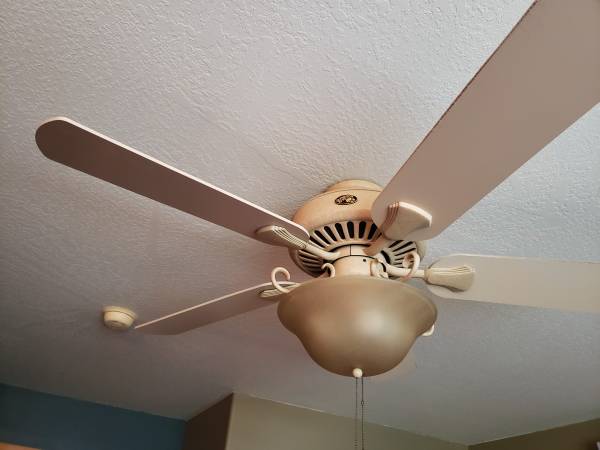 Hampton Bay fan. 20" blades. 3 speed fan and light fixture. Good condition, works well.