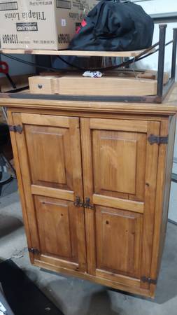 Has 1 inner shelf but has room and wood rails for 5 total. Holes cut in the back for cables. The only other thing I see maybe needing is a refinishing (has a few minor scuffs)