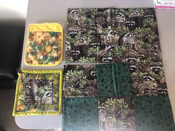 2 WILDLIFE HOT PADS AND 2 CLOTH PLACE MATS (12" x 17-1/2") NEW; Home Made;Very Colorful; $8. For All 4; 406-599-36 four five