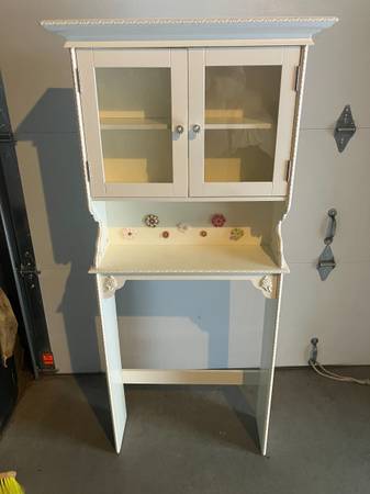 Bathroom storage shelve/cabinet. Measures about 62" high, 28.5" wide and 9.5" deep. Used, good condition. Located about 5 miles west of Belgrade. Cash only.