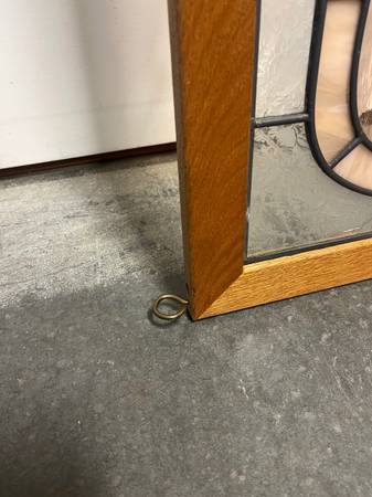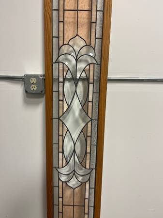 Beautiful vintage framed stained glass transom window / hanging panel in very good condition. Measures about 82” x 13”. Please text for more info.