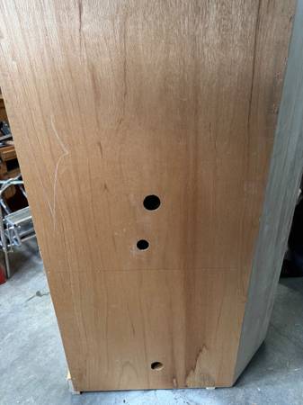 NEW, corner television cabinet with doors, sliding interior shelf for tv, all holes for hook-ups. Lower doors to cover CD, DVD players and media, 1 moveable shelve in bottom. 5’7” tall, 52 wide at front, 23.5” deep, open door width 33”. Upper doors open flat against slides. Text me at 406-five39-two 857.