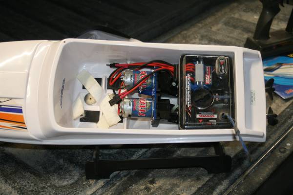 Traxxas Villian rc boat, dual brushed motors, FM transmitter and receiver, fully functional, Nimh battery capable, the speed control is not lipo capable. CASH ONLY, in person only. If it is listed...