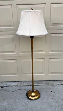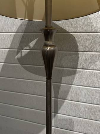 3-4) Silver Floor Lamp with Off White Shade (SKU# CB5/1345): Sturdy and in excellent condition! 58" tall. $40