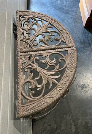 5-6) Ornate Light Brown Textured Steel Half Moon Plant Stand (SKU# CB4/1252): Sturdy and in excellent condition! Dimensions will be posted soon. $35