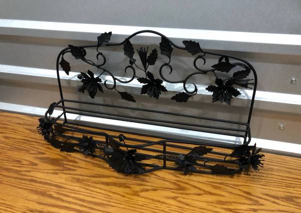 16) Black metal planter or wall shelf with leaf design, in great condition! $15