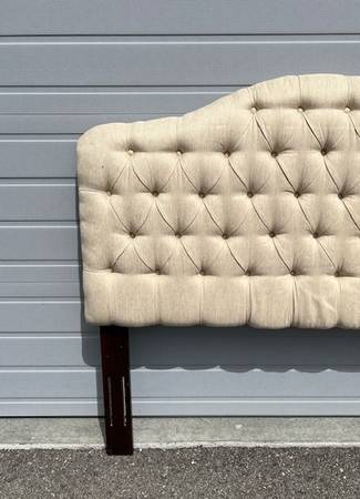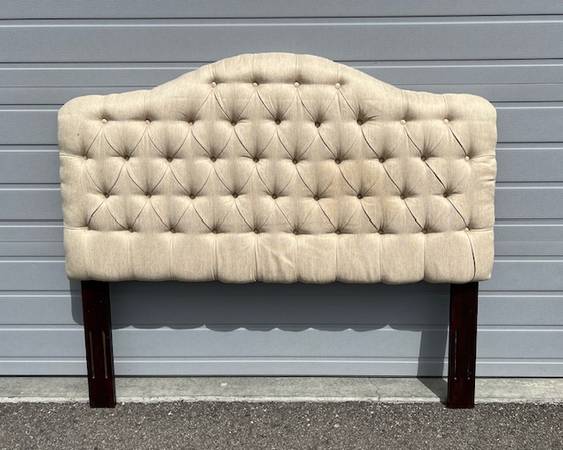 5-6) Quality Beige Tufted Fabric Queen or Full Size Headboard (SKU# CB3/1626): Great condition! 64.5" long x 53.5" tall. $125