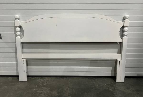 20) White Wooden Queen or Full Size Headboard with Short Posts (SKU# CB4/385): Sturdy and in great condition, with a little bit of wear. $65